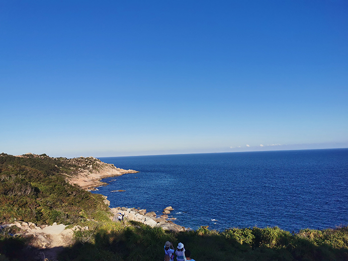 稍作休息后,下午3點(diǎn)多,我們游覽了觀景臺。這里三面環(huán)海,風(fēng)景如畫?;輺|的雙月灣,由兩片半月形灣畔形成,而這一壯闊美景,只有登頂大星山的觀景臺才能看到。駐足在雙月灣觀景臺的最前端,極目遠(yuǎn)眺,藍(lán)天、白云、大海,水天相接,令人心曠神怡。