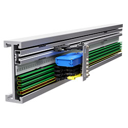 在高架庫的應(yīng)用里,巷道的空間通常很窄。貨物在很短的時(shí)間內(nèi)通過堆垛機(jī)放置到貨架上儲存或從貨架上取下。為了滿足這些要求,VAHLE開發(fā)了排式滑觸線VKS 10??梢院唵蔚貙KS10輕松的安裝到一個(gè)支持背板中。